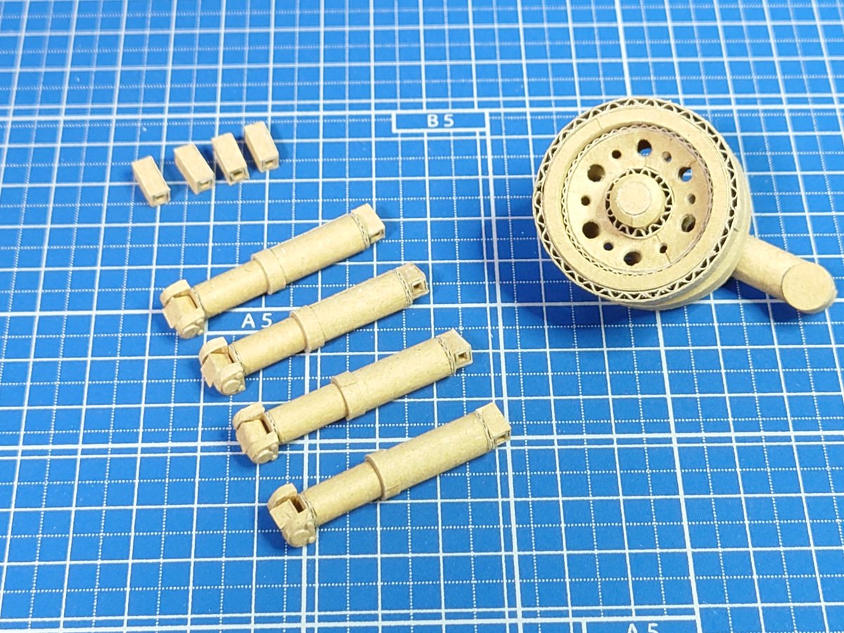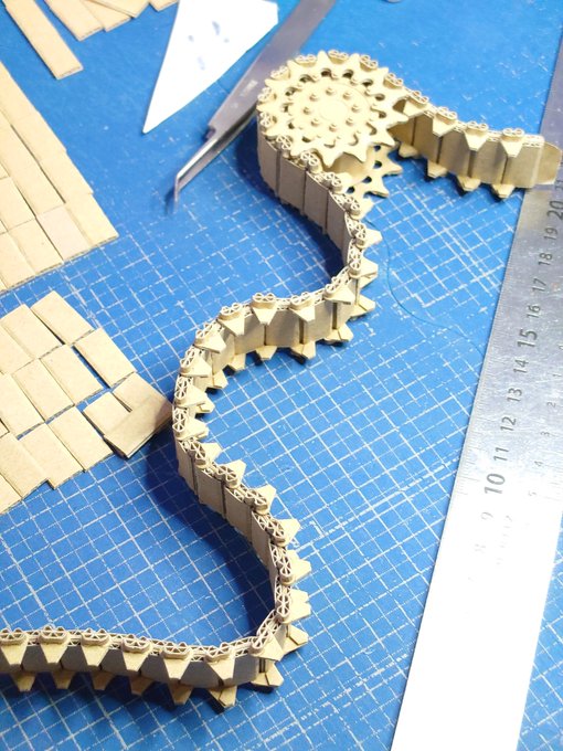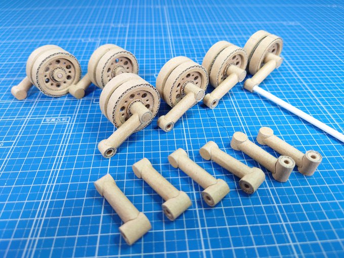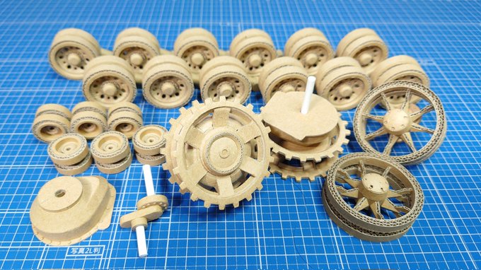 ダンボール Ⅲ突 ここ一カ月イベントや私用で製作が中断しておりました。m(_ _)m 今週は起動輪と誘導輪製作に着手し、ようやく車輪が完了しました。 起動輪本体側のスプロケット内径はギリギリ干渉なし、危なかった。 少々振れが大きいですが良しとして本体行きます。😊 twitter.com/i/web/status/1…