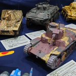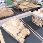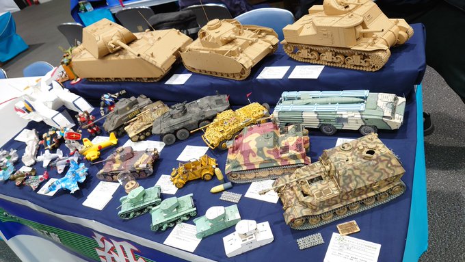 #第一回清水ホビーショー 展示の準備が整いました。5.4mの大きな展示台に10作品が並んで壮観です。 地元静岡で全作品の展示の機会を戴き心より感謝申し上げます。 戦車以外の作品もあり色々な方に見て喜んでいただけたら幸甚です。 8/12(土), 8/13(日)の2日間、どうぞよろしくお願いいたします。