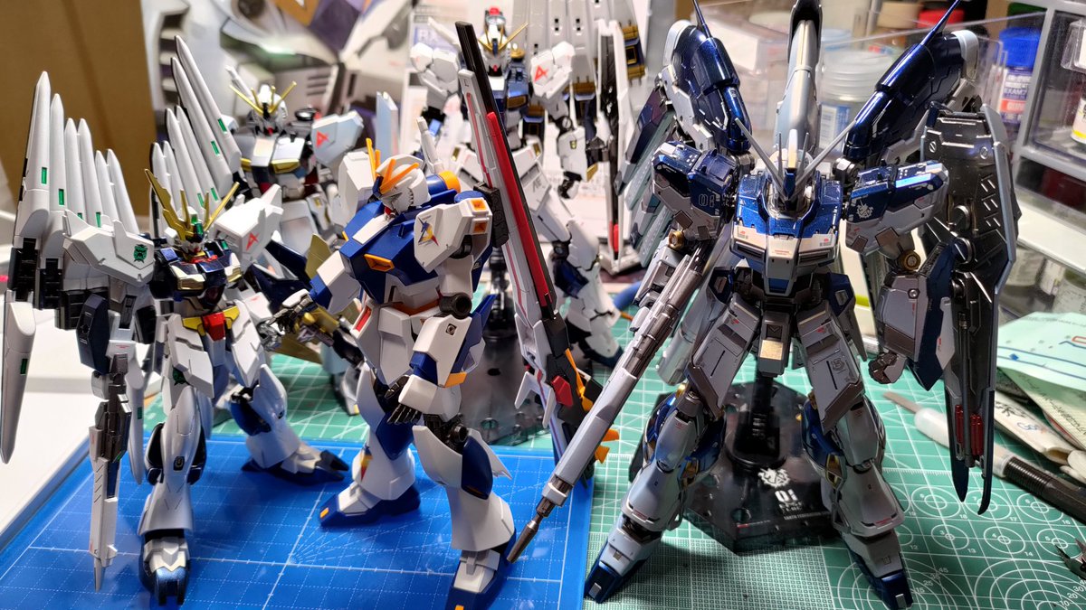 #νガンダムの日 #ガンプラの画像貼るとRTされると聞いて 今年は1/1も含めνガンダムまみれな年 フェイクνフル装備にHi−ν EG2機 と多数製作 現在もRG福岡νガンダムのデカール貼り中 諸用で午前中が潰れたため明日の完成を予定しています 一枚目のEGでやった撮影をRGで撮り直すのが目標