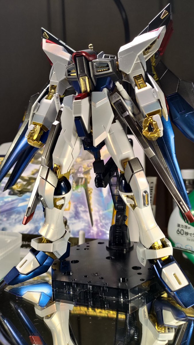 #俺達のアナザー #ガンプラ好きと繋がりたい #ガンプラの画像貼るとRTされると聞いて 2/3機目 MGストライクフリーダム 現状完成している最新作です 普段あまり使わないゴールドやシルバーのデカールを多用しています