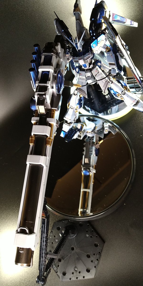 #今月作ったプラモ晒そうぜ 全部盛りνガンダム各形態 全部盛りアップ HWS装備 福岡νガンダムフル装備 福岡展示状態 ブラックライトで立像同様にカメラアイを青発光 かなりのハイカロリーな機体なので今月はコレ一機のみ 来月は二機いけたらいいかな?