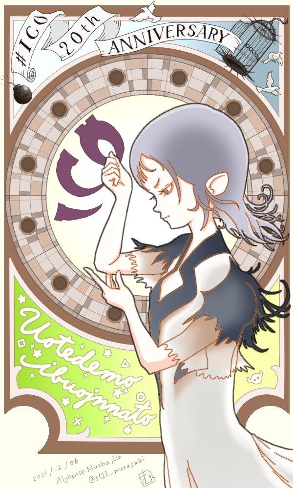 10 23 『ミュシャ風 ICO』 20周年おめでとうございます。世界一肘を気にするヒロイン・ヨルダさんを、アールヌーボーっぽく描いてみました。 「ウオテデモ イブオジンナァト」 #ICO20thANNIVERSARY 21/12/06 00:00