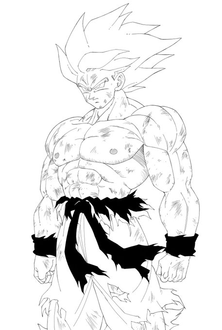 「そのうちこいつをお前本体にくらわしてやるさ…」 もともとバーダック描くつもりだったのにYouTube観てたらかっこよすぎて描きたくなりました…やっぱりベジット好き