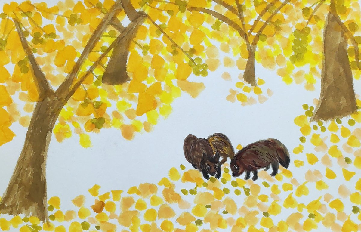 8 150 銀杏拾い🦝 #イラスト練習中 22/10/06 08:31