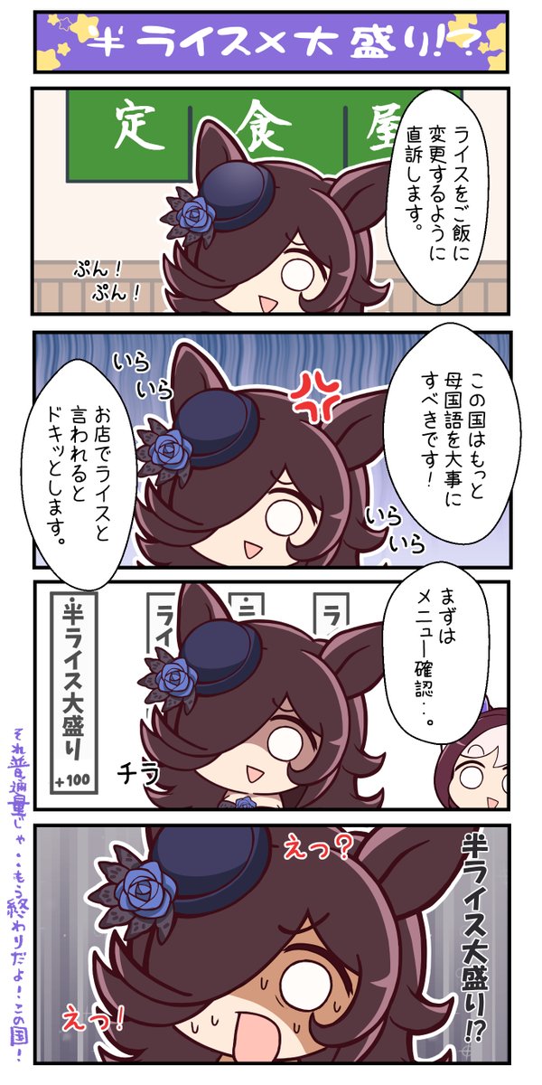 2 5 過去にとある定食屋でおかわり自由なのにメニューでライス大盛りあったな~( ̄д ̄) ライスが主役のお話になります。 不定期の投稿になりますが ウマ娘の日常(異常)を描いていきます! #ウマ娘 #4コマ漫画 23/06/16 06:35
