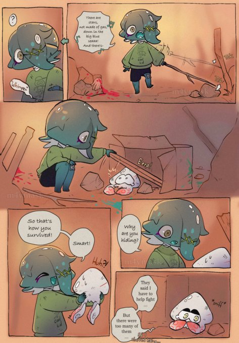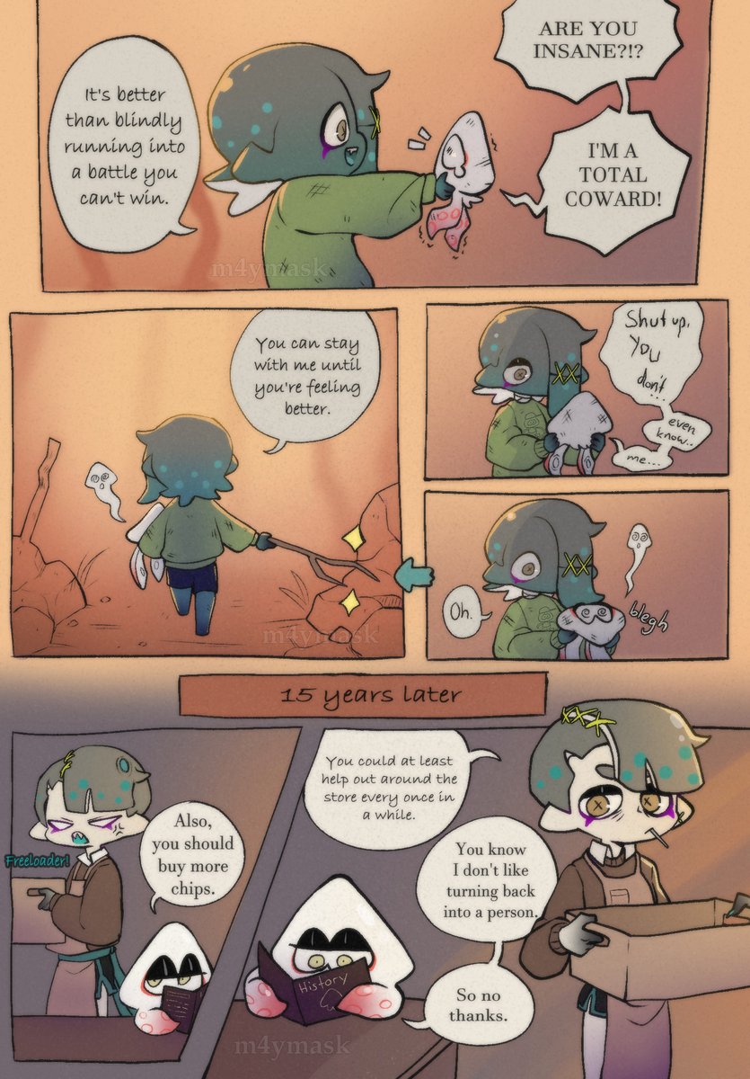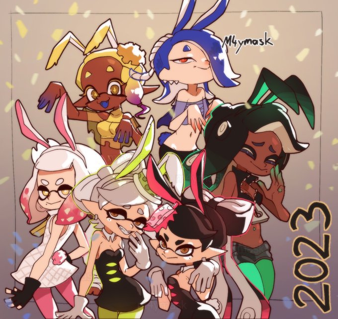 To celebrate 5k followers I redrew my first splatoon drawing I posted here :] Thank you all for being such a sweet community ❤️ When I started playing the first game I'd doodle in a sketchbook not knowing that I'll be able to share it online someday :] #Splatoon #Splatoon3 twitter.com/M4yMask/status…