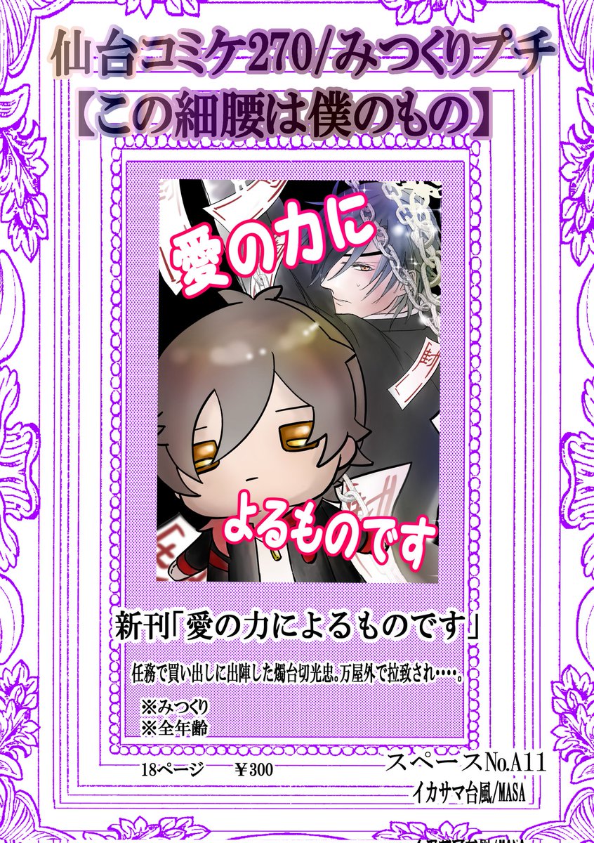 細腰新刊サンプル『愛の力によるのもです』 | ma*sa #pixiv pixiv.net/artworks/10276… どうしても支部のサンプルがザリザリになるので困ってますが宜しくお願いします。