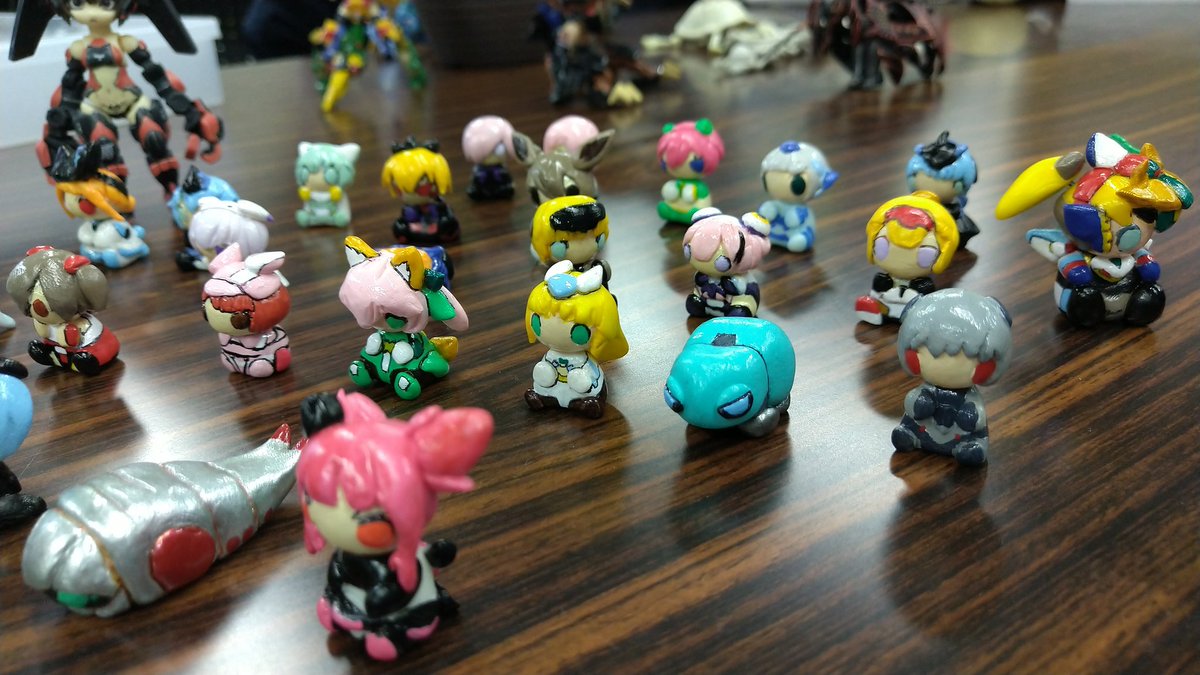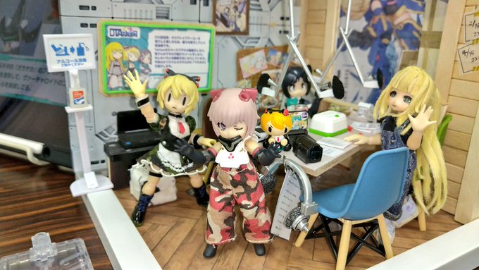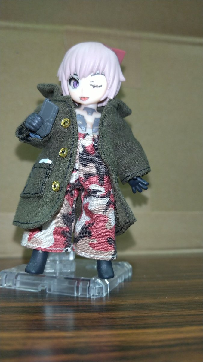 #CDTA #デスクトップアーミー イベントでの購入品を並べてる やそはちさんのろっくんパーカー Ayaさんのトレンチコート キャバレリークラフトさんの ブーツユニット、砲弾 kaennさんのエンブレムシート みや@我道軒さんのハンドマイクとネジ