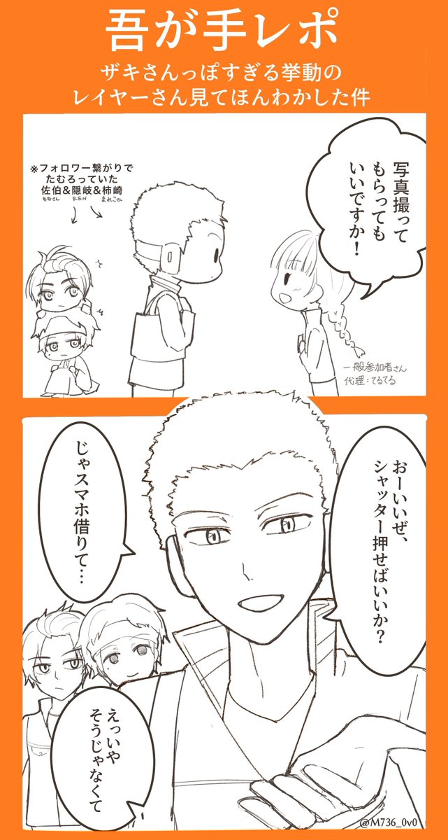 先日の吾が手のコススペでのレポ描いた…! ザキさんはもっと自分に自信を持ってほしいと思いつつ、こういうところも愛おしいよな… 佐伯巻き込み失礼🙏