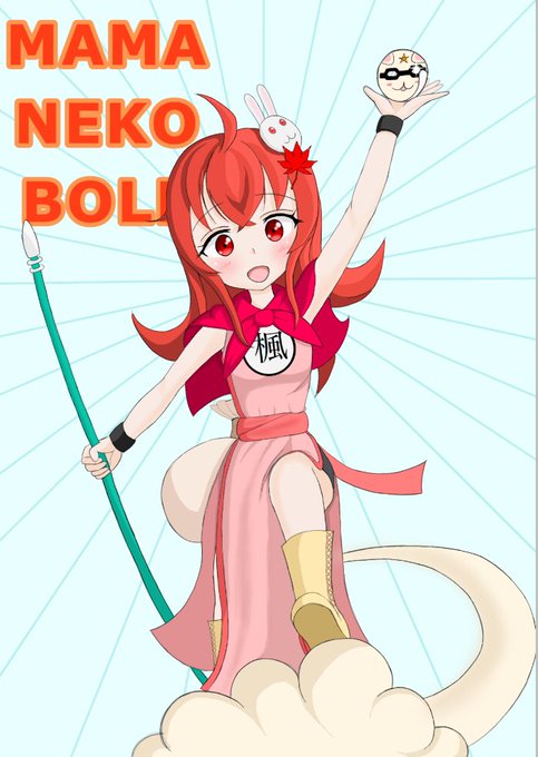 #絵描きさんと繋がりたい #冬の創作クラスタフォロー祭り #ドラゴンボール ? 楓編集長!新しい企画出来上がりました! 「MAMANEKO BALL」 主人公 楓紅紅ちゃんが7つあるママ猫ボールを集めて夢を叶える夢と希望の大冒険‼️伸縮自在の物干し竿を武器に暴れ回る楓サン、酔泥雲に乗って大活躍ww…