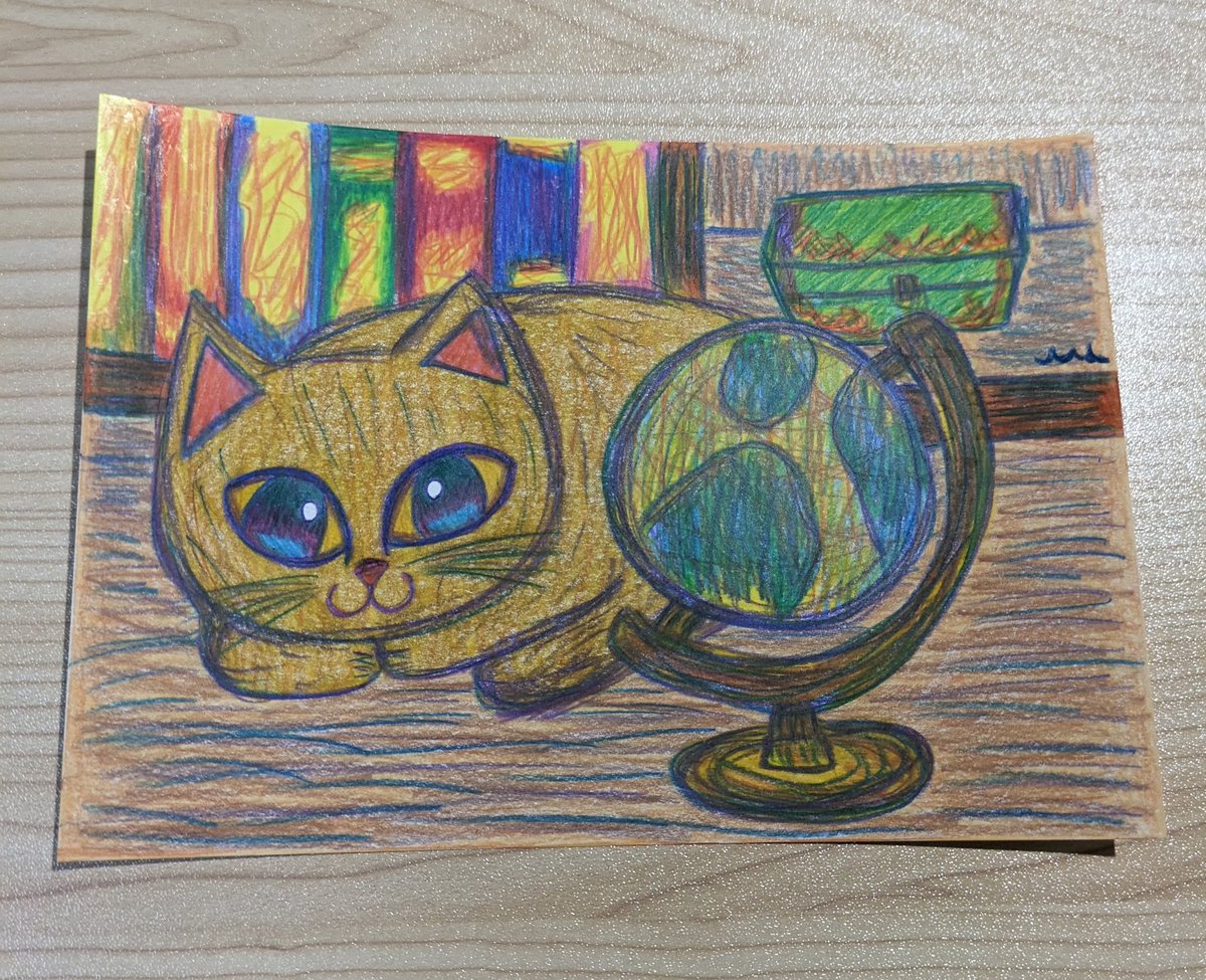 3 16 猫と虹色猫型リンゴ🐈🌈😺🍎💖 #絵 #イラスト #アート #お絵描き #アナログイラスト #色鉛筆画 23/06/19 14:56