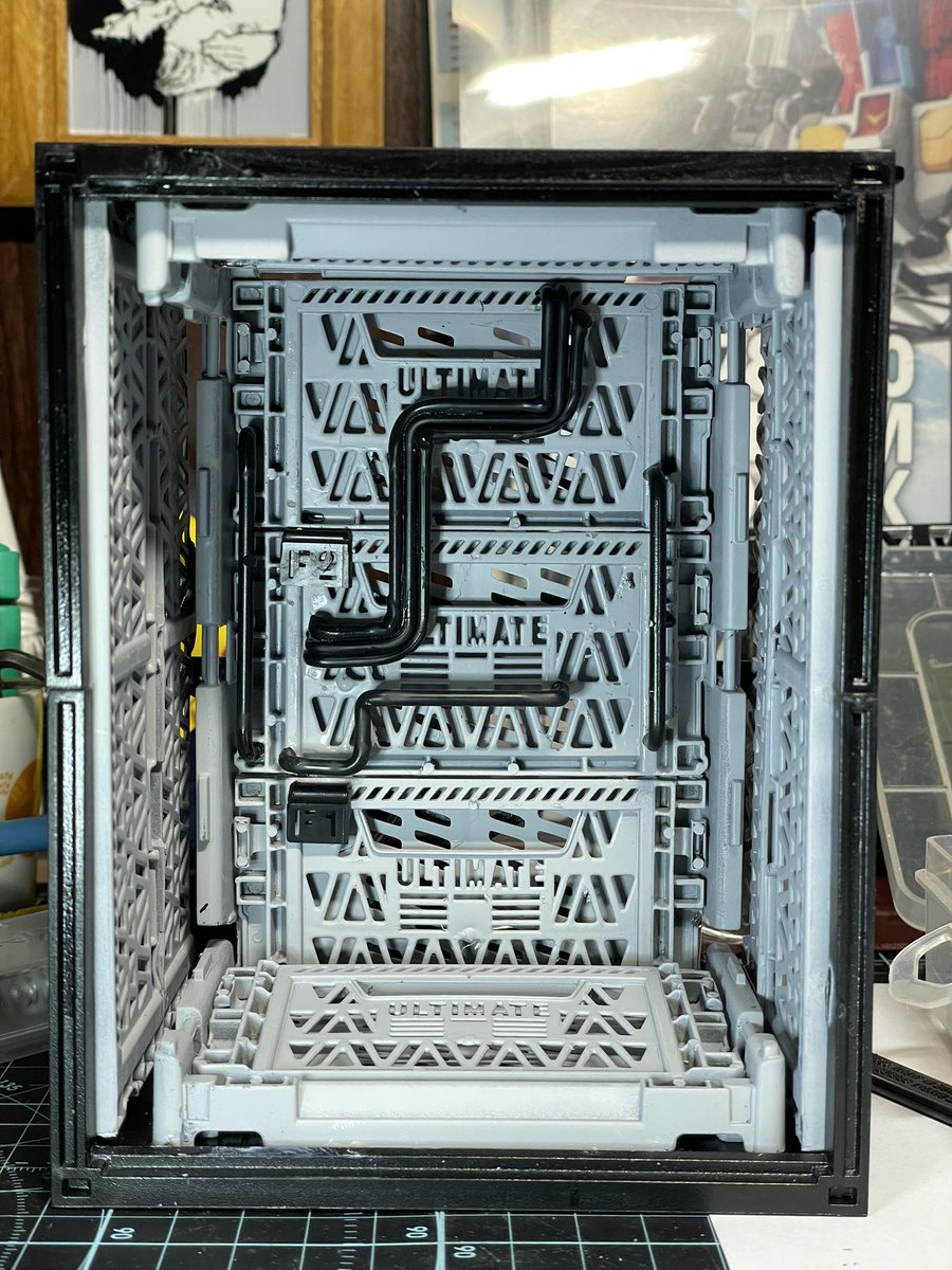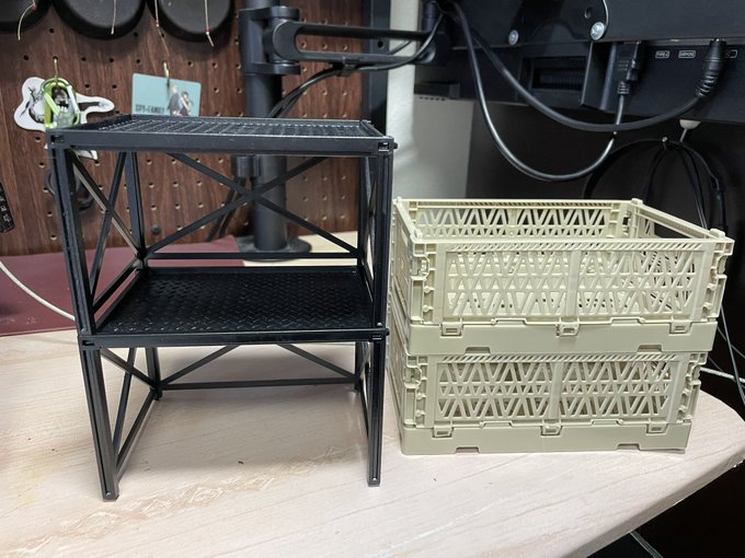 ディスプレイベースが全然見つからなかったので、コレをこうしてグレーのサーフェイサー吹いて、余ったランナー着けて… 自作格納庫できました✌️ #ガンプラ #ガンプラの画像貼るとRTされると聞いて #ガンプラはどんな自由な発想で作ってもいいんだ