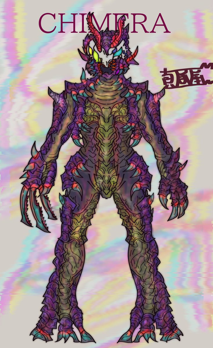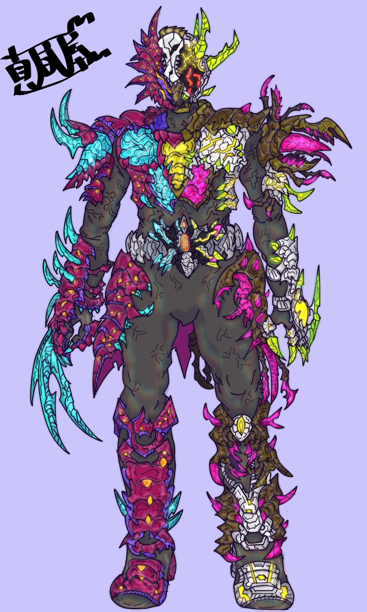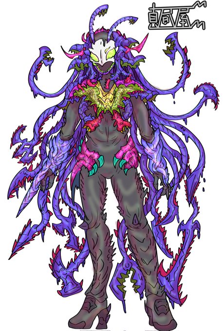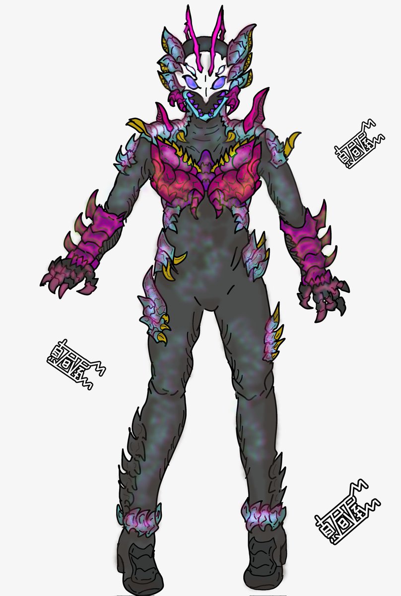 『ヒーローとして活躍していたが人々の心の醜さを目の当たりにして絶望し成り果てた姿』みたいなイメージで描いてみたキャラ。 ベルト周辺のデザインがあにえちゃん達の変身するスーツと似ているのは元々“人々のために戦っていた存在”だから。 #怪人 #オリジナル #絵描きさんと繫がりたい