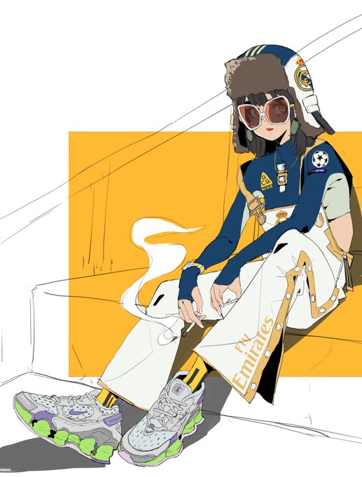舊圖重發part3 世界盃快到了、貼個之前設計的五大聯賽角色 各取兩隊元素來發想衣服配個香菸 這組是西甲的皇家馬德里跟巴塞隆納