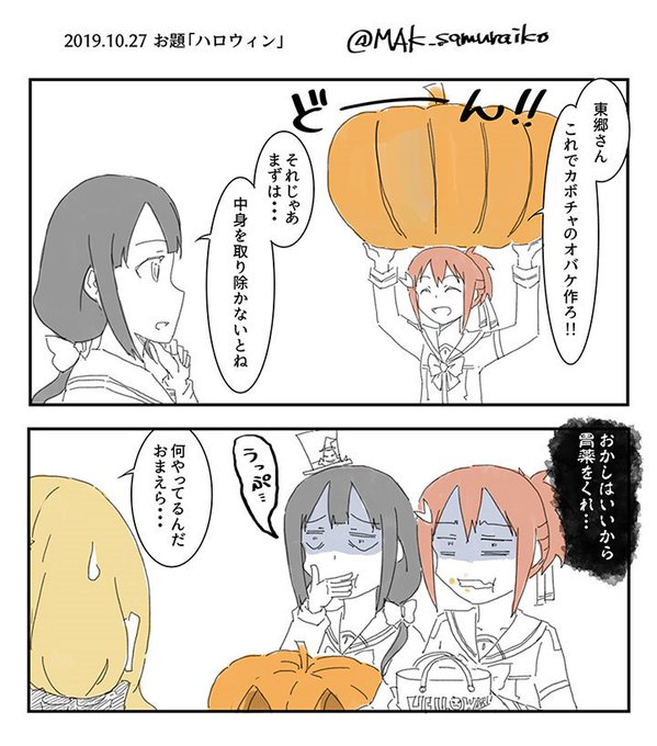 38 110 お題「ハロウィン」 ジャック・オー・ランタンを作る友奈と東郷。 #ゆゆゆ版真剣深夜のお絵かき60分一本勝負 19/10/27 23:40