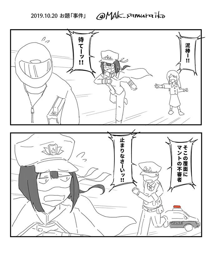 25 91 お題「事件」 大追跡。 #ゆゆゆ版真剣深夜のお絵かき60分一本勝負 19/10/20 23:37