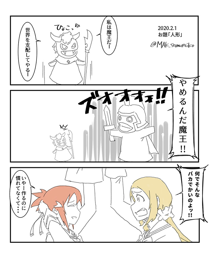 26 92 お題「人形」 幼稚園で人形劇を披露する勇者部 #ゆゆゆ版真剣深夜のお絵かき60分一本勝負 昨日のお題が面白そうだったので。トゥギャまで出た後の投稿でごめんなさい。 20/02/02 21:21