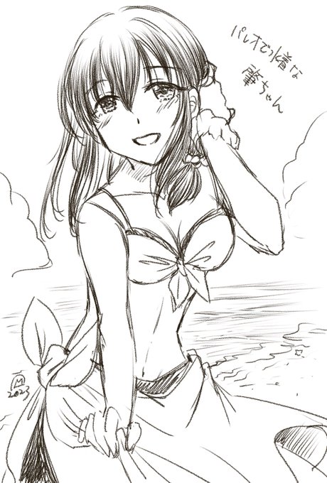 ラクガキリクエスト続き、パレオで水着な肇ちゃん! @shio_tech