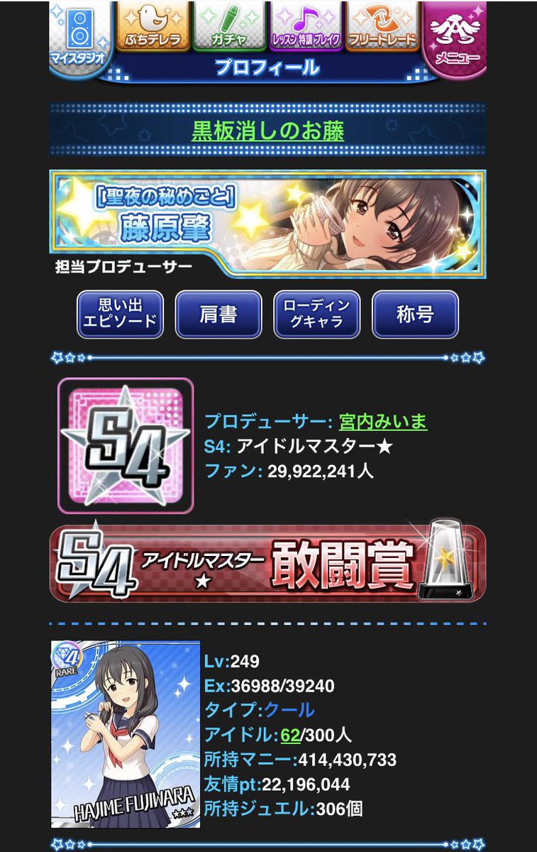 38 44 プレイオフ投票は済みましたか?まだの方、是非藤原肇に投票お願いします! #StageforCinderella #SfCプレイオフ #肇を一に #藤原肇 23/05/06 00:30