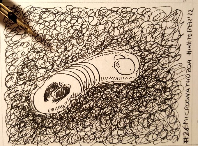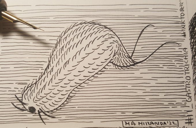 #Gastrotricha son animales acuáticos que viven entre el sedimento, tienen el cuerpo cubierto por espinas y la zona ventral con cilios. No superan los 1,5 mm #inktober2022 #inktober2022day11