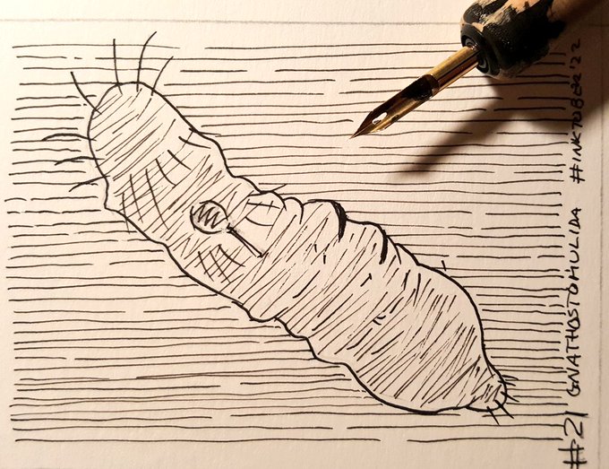 #Gnathostomulida tienen de 0,5 a 3 mm, aspecto vermiforme, viven en el sedimento marino y se alimentan mediante mandíbulas #inktober2022 #inktober2022day21