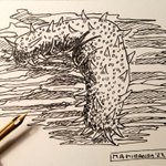 #Echinodermata pueden alcanzar hasta 60 cm, son marinos con simetría radial secundaria y un sistema hidraúlico llamado aparato ambulacral. Tienen endoesqueleto con placas y/o espinas. #inktober2022 #inktober2022day29 #zoology