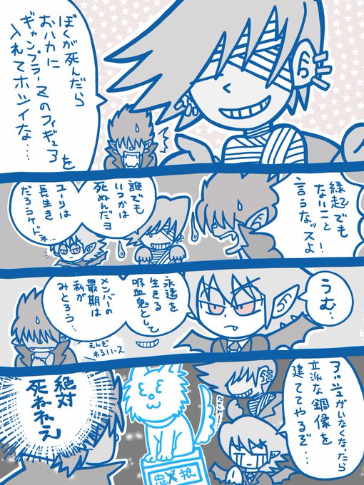 #popn_art #まりおのアイビスペイント ポップンミュージック、deuil3人組マンガ ユーリは吸血鬼だから長生きだろうけど、スマイルもかなり長生きしてそう…と言うか、そもそも生きてるのかなあ彼は…。 狼男の寿命は人間と変わらないんだろうか。