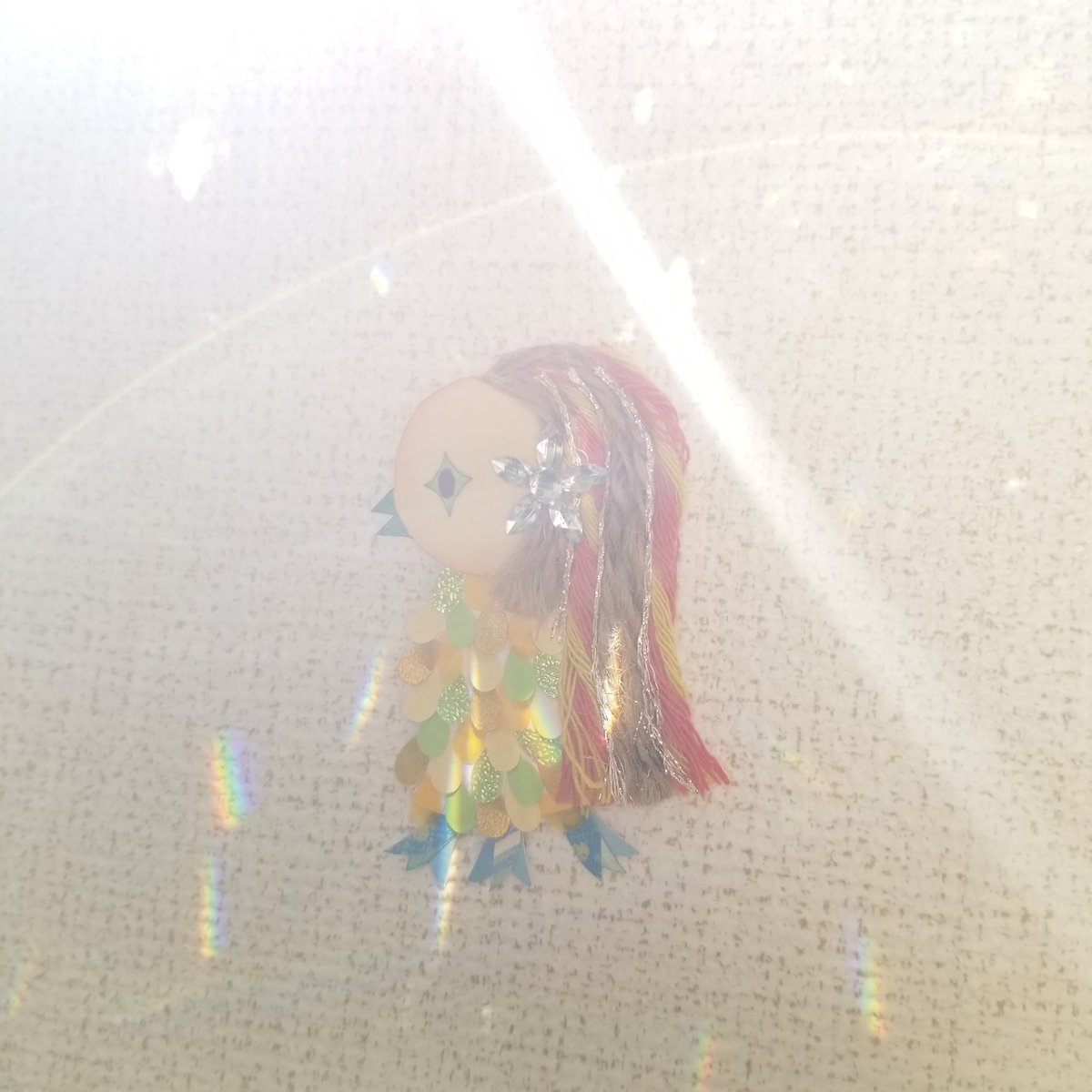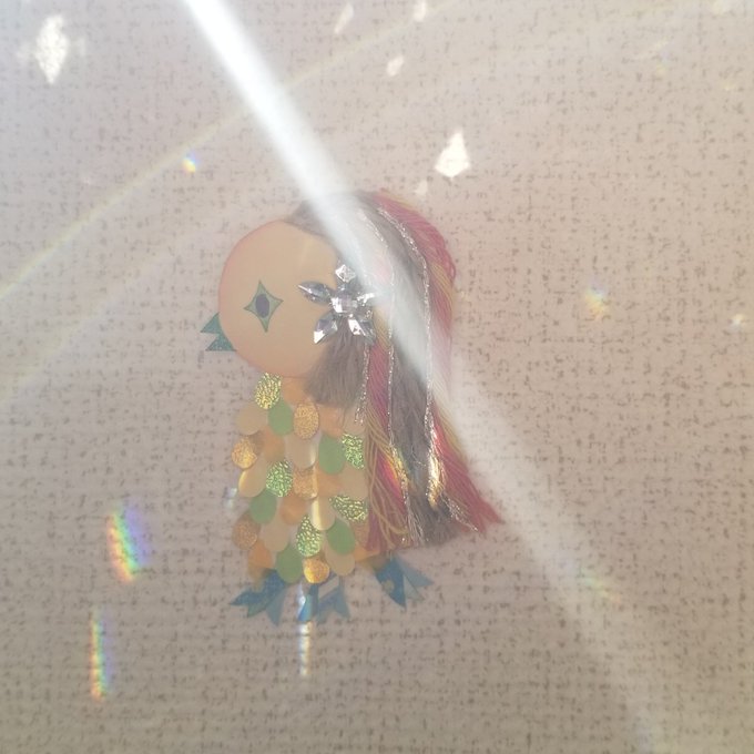 雨やどんよりお天気で、おひさまが恋しいですね。 8代目アマビエさん、日光浴の一日。 先日見た虹が思い出されます🎵 #amabie #papercraft #handmade #ペーパークラフト #アマビエ #オーダー承ります #ハンドメイド #MARURUペーパークラフト
