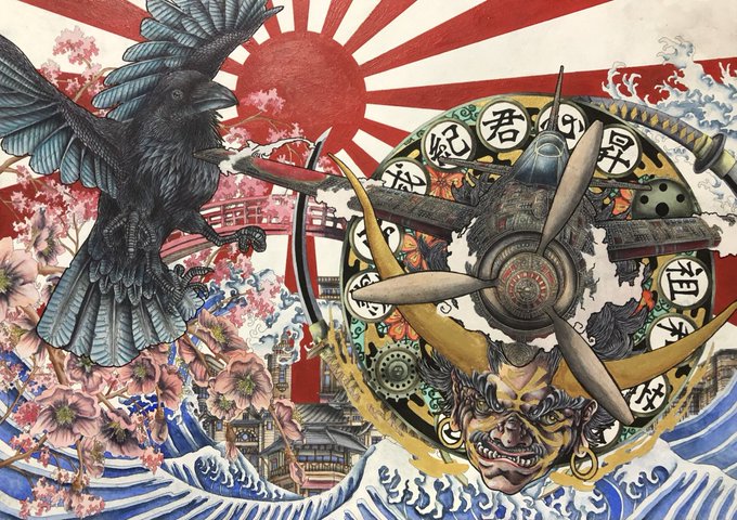 私は日本国の画家です。 I'm a Japanese painter. 美しい日本を描き、美しい旭日旗を世に広める画家活動をおこなっています。 We are engaged in painter activities to draw a beautiful Japan and spread the beautiful rising sun flag to the world. #art #illustraion #ArtistOnTwitter