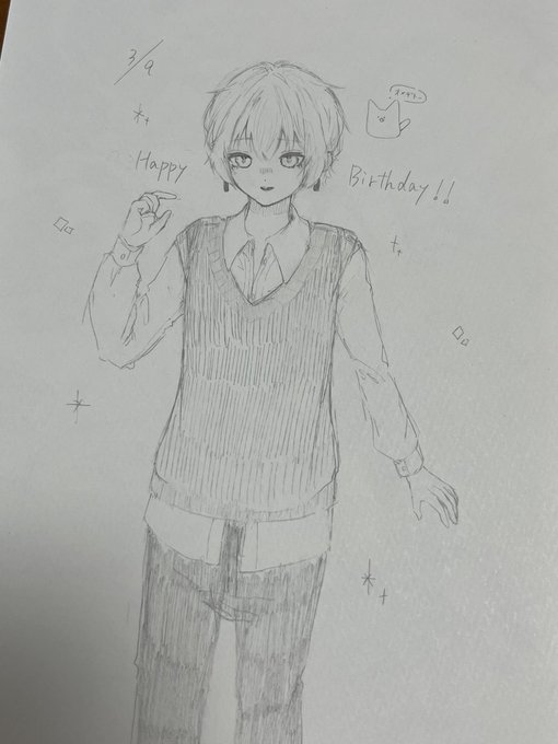 1 5 @F_kuroneko22 お誕生日おめでとう✨🎉 #イラスト #アナログイラスト 23/03/09 21:54