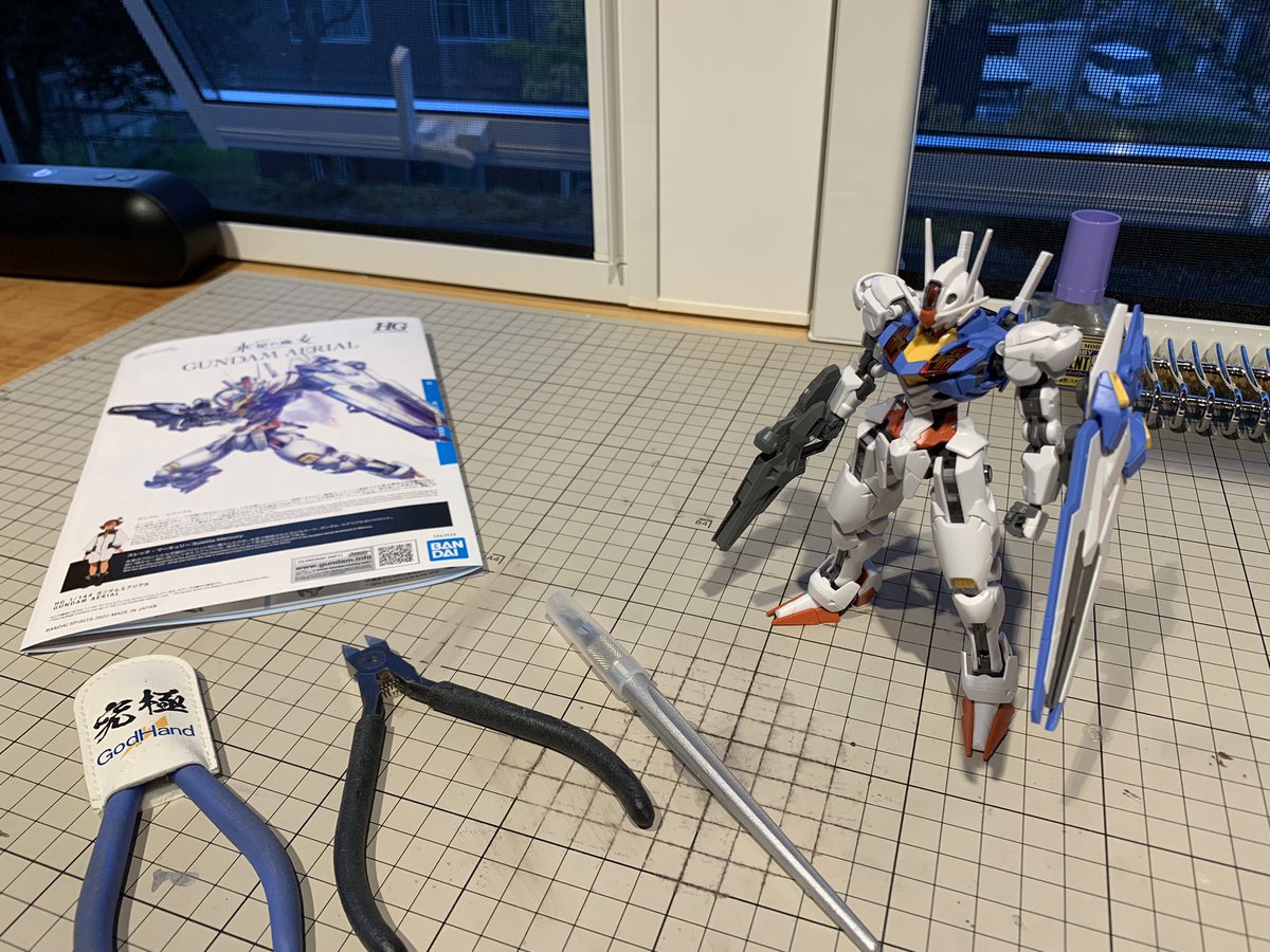 7 42 水星の魔女第1話の興奮のままに成形色活かしで製作していたHGエアリアル完成しました! キービジュアルの膝立ちポーズがやりたいがためにビルドパーツ平手を流用。 今のバンダイキットは、成形色活かしでも充分の完成度!今後の製作幅が広がりました。 #ガンプラ #水星の魔女 #ガンダムエアリアル 22/10/10 17:29