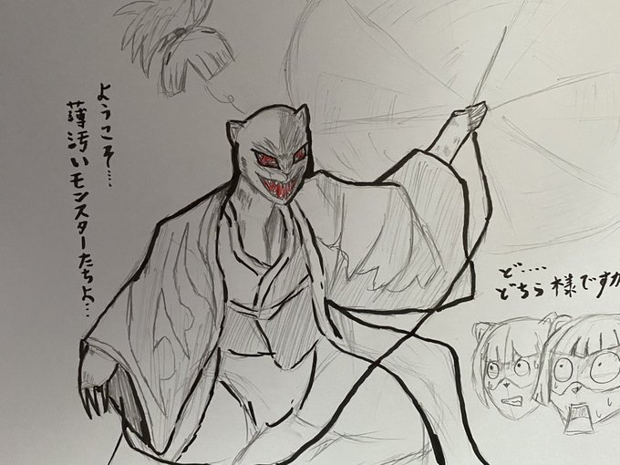 #リンクスお絵描き部 #遊戯王 今回は妖仙獣鎌壱太刀! 鎌壱太刀しょうかnー… だ、誰だオメェェェェ⁉️