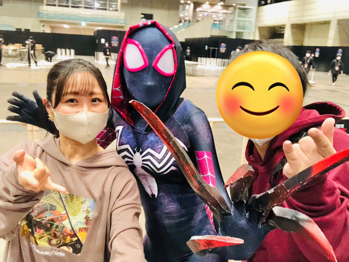 見つけて大興奮!!豪華すぎるスパイダーマン達と🥹🕷🕸 スパイダーマンの服も褒めてもらえて嬉しかった☺️ Jジョナジェイムソン編集長!! 色んなスパイダーマンと写真撮ってる所を楽しく見させてもらってました🤫 一緒に撮って頂きありがとうございました☺️💗 #東京コミコン #東京コミコンコスプレ