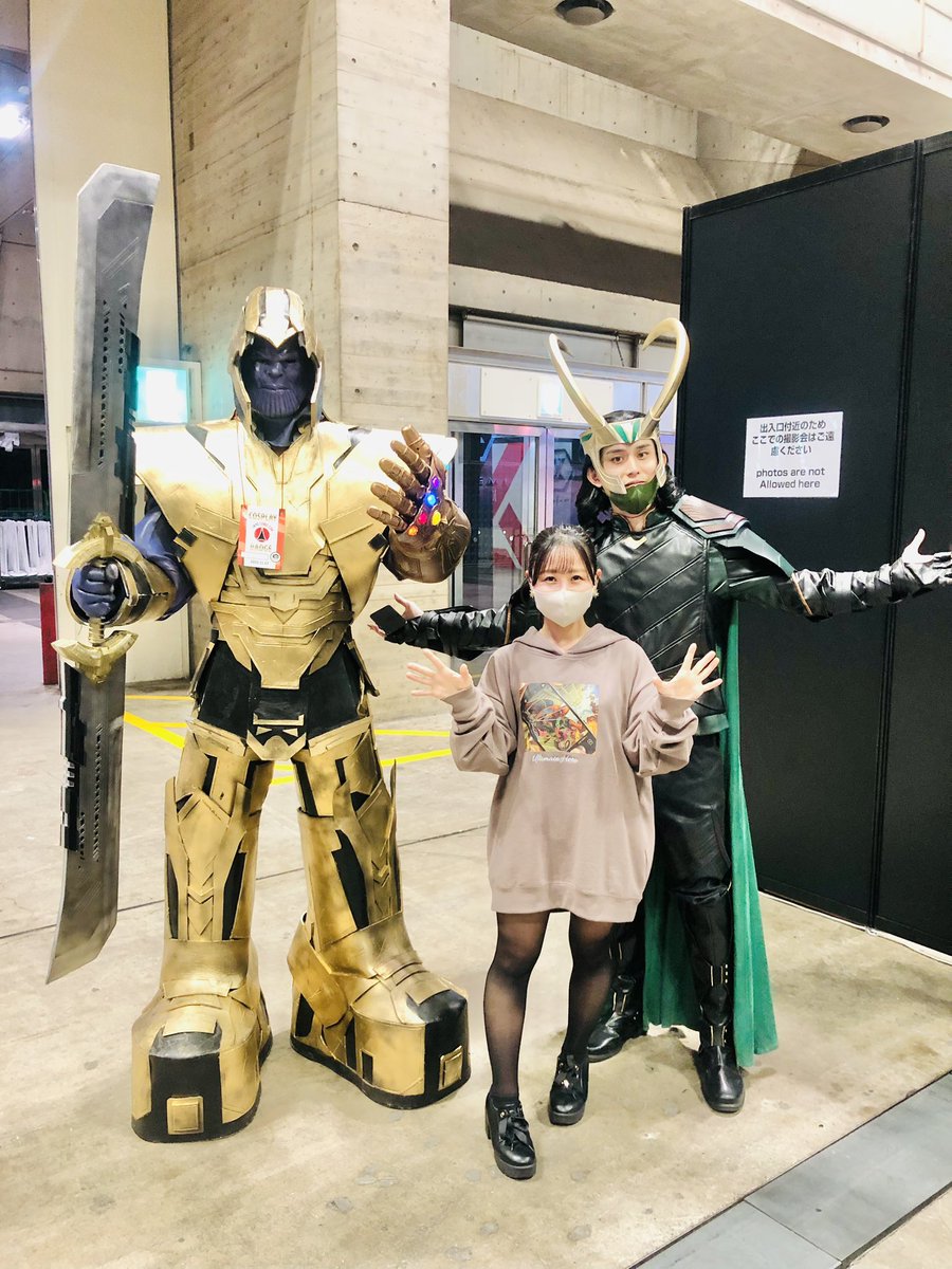 サノス、ロキ見つけて爆上がり! 私の前に撮ってた人がこのポーズで撮ってて、私もお願いして撮ってもらった写真🤣 めちゃくちゃ良い🤣🤣🤣 一緒に撮って頂きありがとうございました☺️💗 #東京コミコン #東京コミコンコスプレ