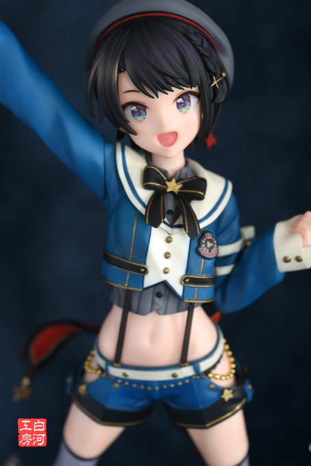 ガレージキット55体目 原型:o-mesallue ホロライブ 大空スバル 完成! 髪のハイライトはクリスタルカラーのトパーズゴールドとアメジストパープルのグラデ。 青がマジ難しいので過去ログみていただければ。 サスペンダーは0.5mm塩ビ板で作っています。 とにかくかわいい! #プロテインザスバル