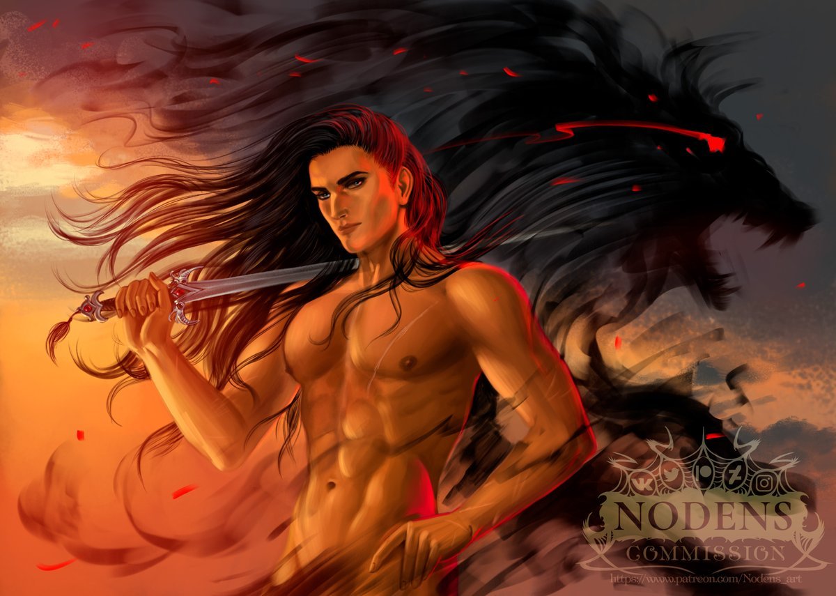 #Artwork of another of my hot humans with swords. Wolf Prince Leorin, Pensilea's younger brother by a few minutes. 😊 Now and then, his sister sees a spectral wolf around him. For now, I'll leave it up to speculation of what it means. By @Nodens_art #ArtistOnTwitter#art