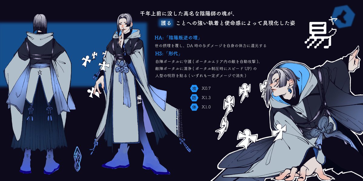 コンパスのヒロコン投稿しました❕陰陽師く~~~ん スプにも成人男性(❔)がいて欲しくて考えました 急急如律令❕❕❕ #コンパスお絵描き #コンパスヒーローデザインコンテスト4 twitter.com/MC_haku21/st…