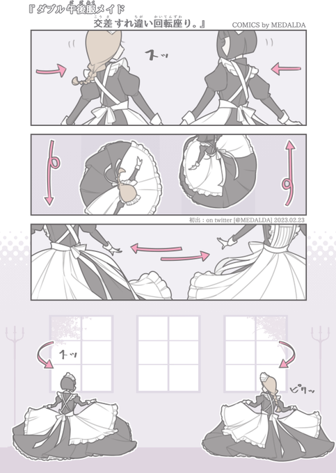 55 155 ダブル午後服メイド 交差すれ違い回転座り。 23/02/23 21:11
