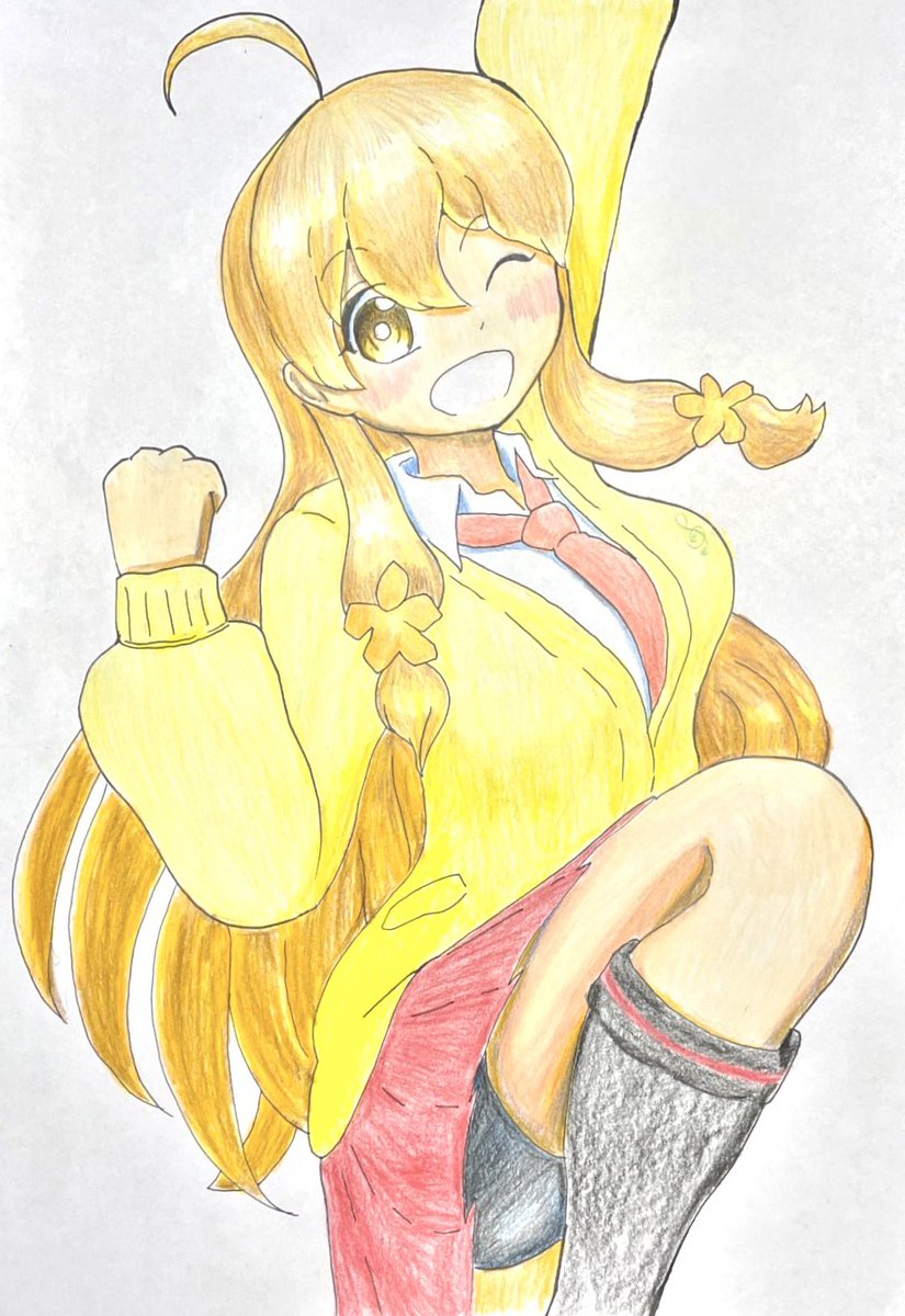 リプきたキャラ4人でアンケ取って1位のキャラ描くやつから しおんちゃんを描きました!ありがとうございました!