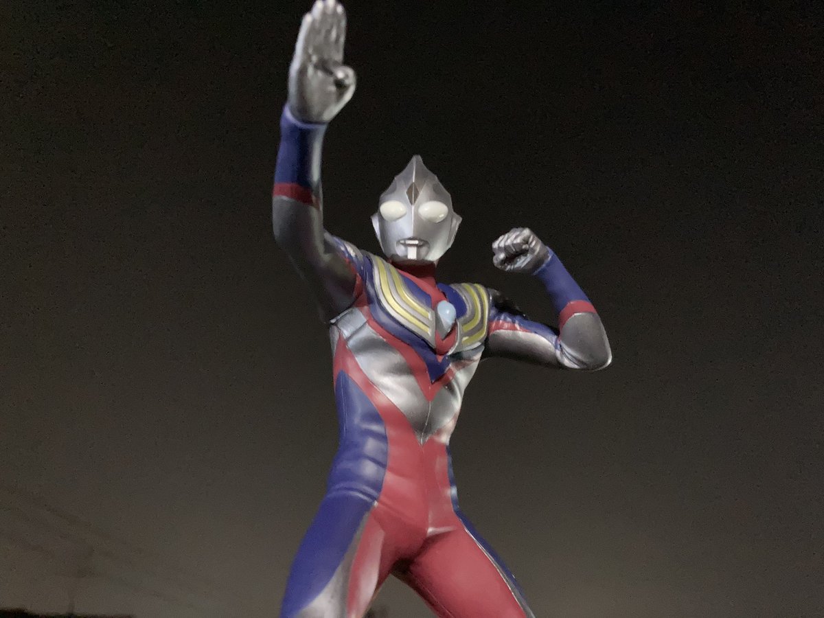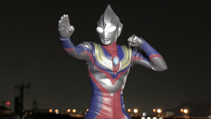 #オモ写 #フィギュア撮影友の会 ハッシュタグつけたら僕のふつくしいティガを見てもらえるかな? 夜のティガは綺麗だ……