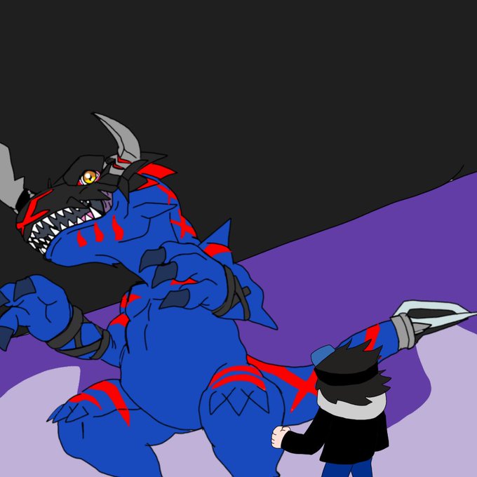 Think I have been playing too much digimon survive XD this idms all I thougjt seeing him but I love new Greymon Blue X #digimonfanart #Digimon
