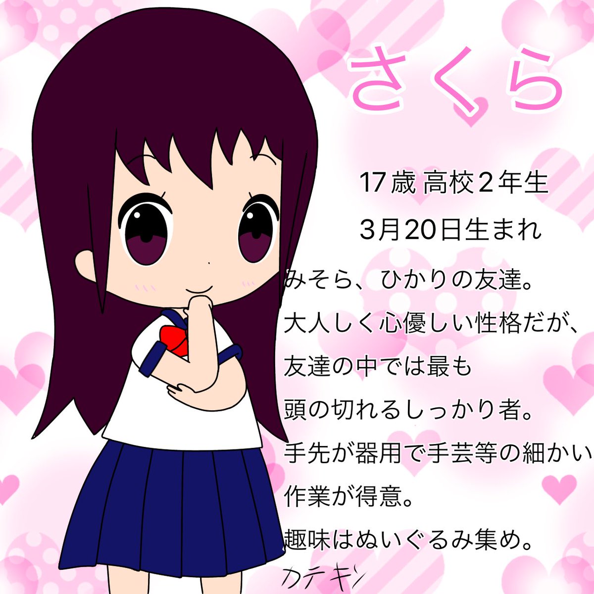 @nanase_nayumu 参加失礼します。カテキン🍵です! 3人のオリキャラ(名前は1枚目から、みそら、ひかり、さくら)を描いてます(*^^*) #再掲したらフォロワーが増えるらしい #絵師さんとつながりたい #うちの子描いてみませんかキャンペーン