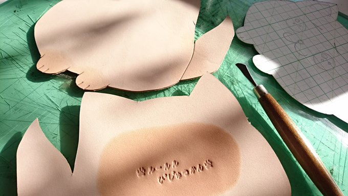 レザークラフトで毛玉ちゃんを作ってみました✨🐏✨ もこもこ感を出すためにシボ加工の施してある革を使用してみました。 アイボリー(ライトベージュ)っぽい色の革が偶然見つかってよかったです(*´-`) #もこ田めめめ #めめアート #どっとライブ造形部