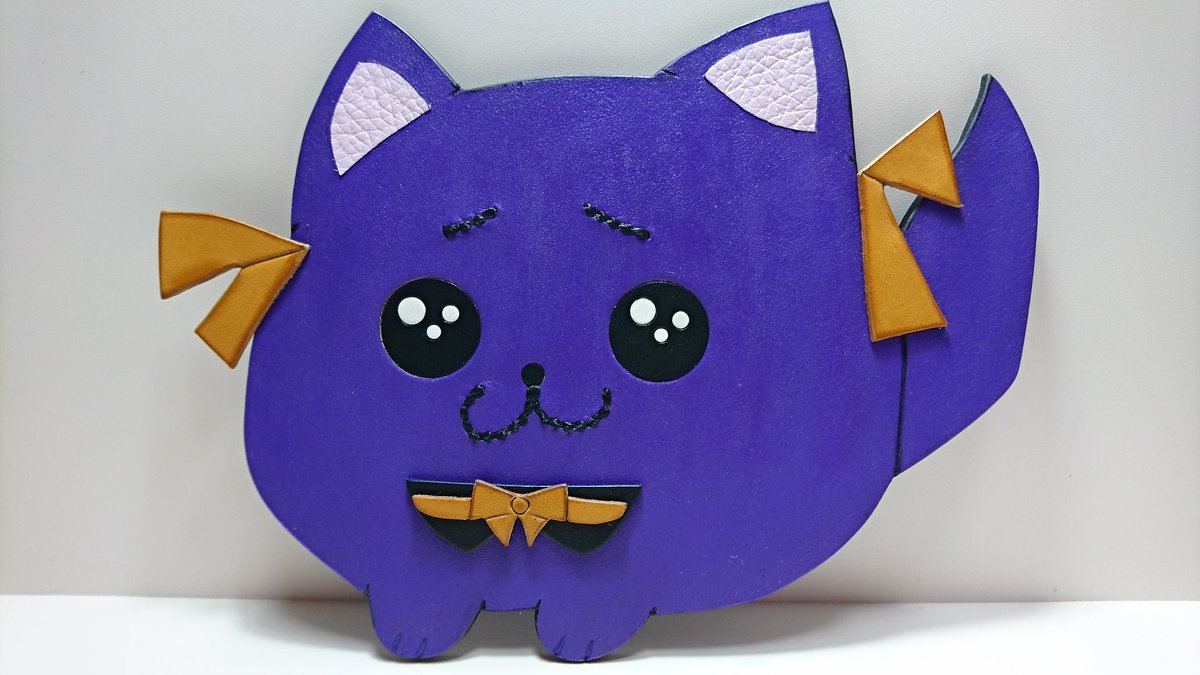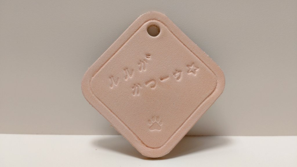 レザークラフトで ルルラニアンを作ってみました✨🍖🐾✨ 初めて革の染色(塗装)からの挑戦…❗ ご本人(ご本犬…❓)よりちょっとだけ小さめ、体高15cmのルルラニアンです。 困り眉と潤んだ瞳がかわいい☺️ #ルールル美術館 #どっとライブ造形部