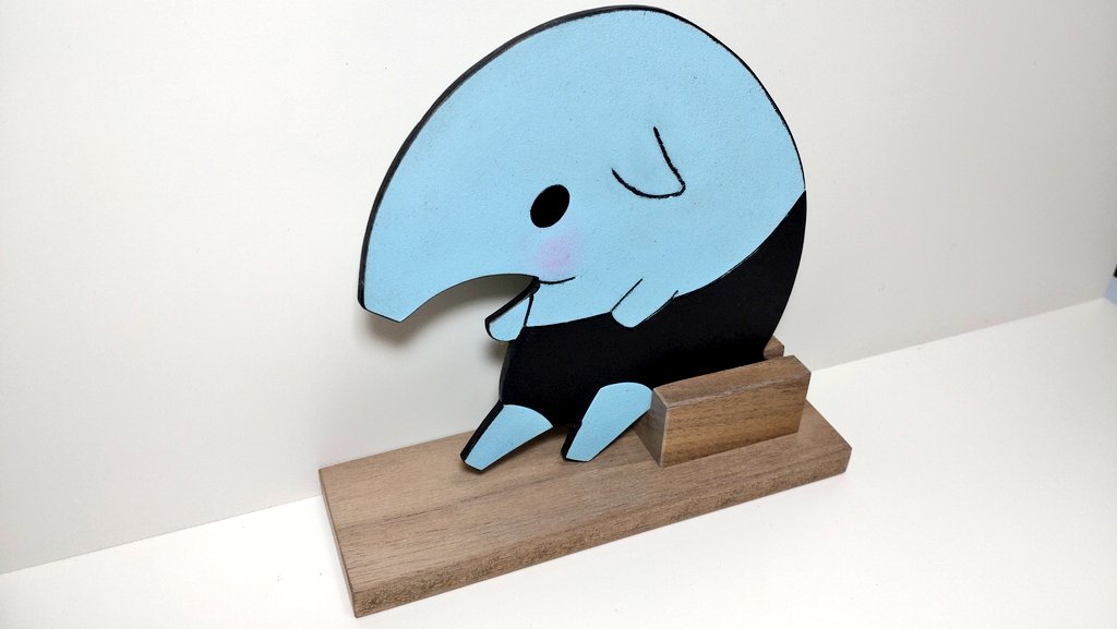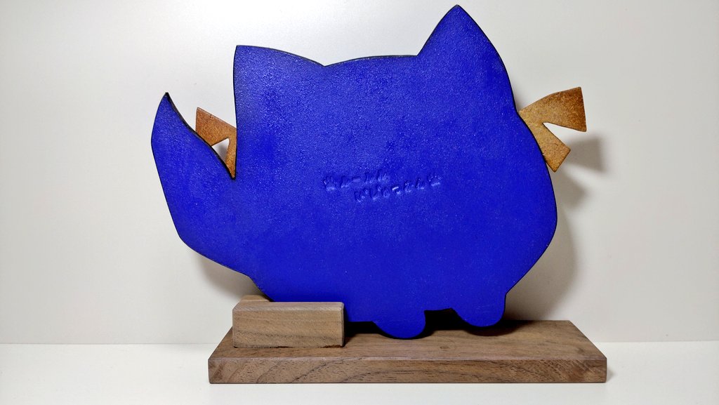 ウォルナット(くるみ)で ばっくんのウッドスタンドを作りました。 ちなみにこちら 会社で焼却処分される予定だった端材を再利用しています。 よって材料費は実質“無料”です――― ʕ º ᴥ ºʔむ、無料で!? #どっとライブ造形部
