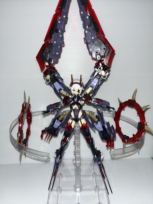 1 3 スサノヲの背中組み替えてチャクラムみたいな武器にしました (これやりたくて2体目買ってしまったなんて、、、) #メガミデバイス 22/02/10 23:59