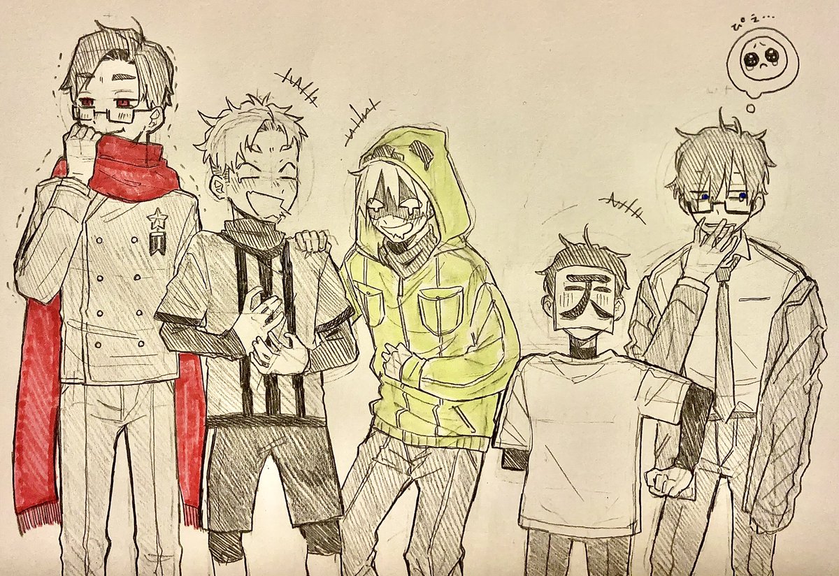 昨日描いてる途中で寝て遅刻した五いの日 #nin_draw