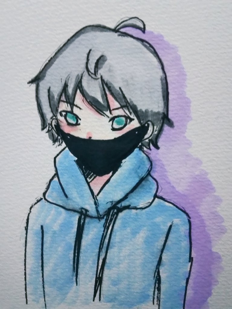 #なろあーと インク乾く前に色塗ってしまい 黒マスクでカバーしちゃいました