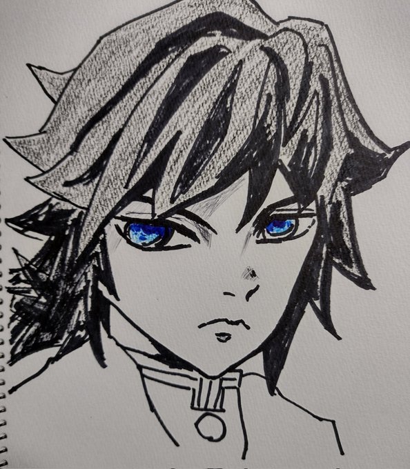 冨岡義勇さん 皆、髪の毛が難しい、、、 #鬼滅の刃 #イラスト #ペン画