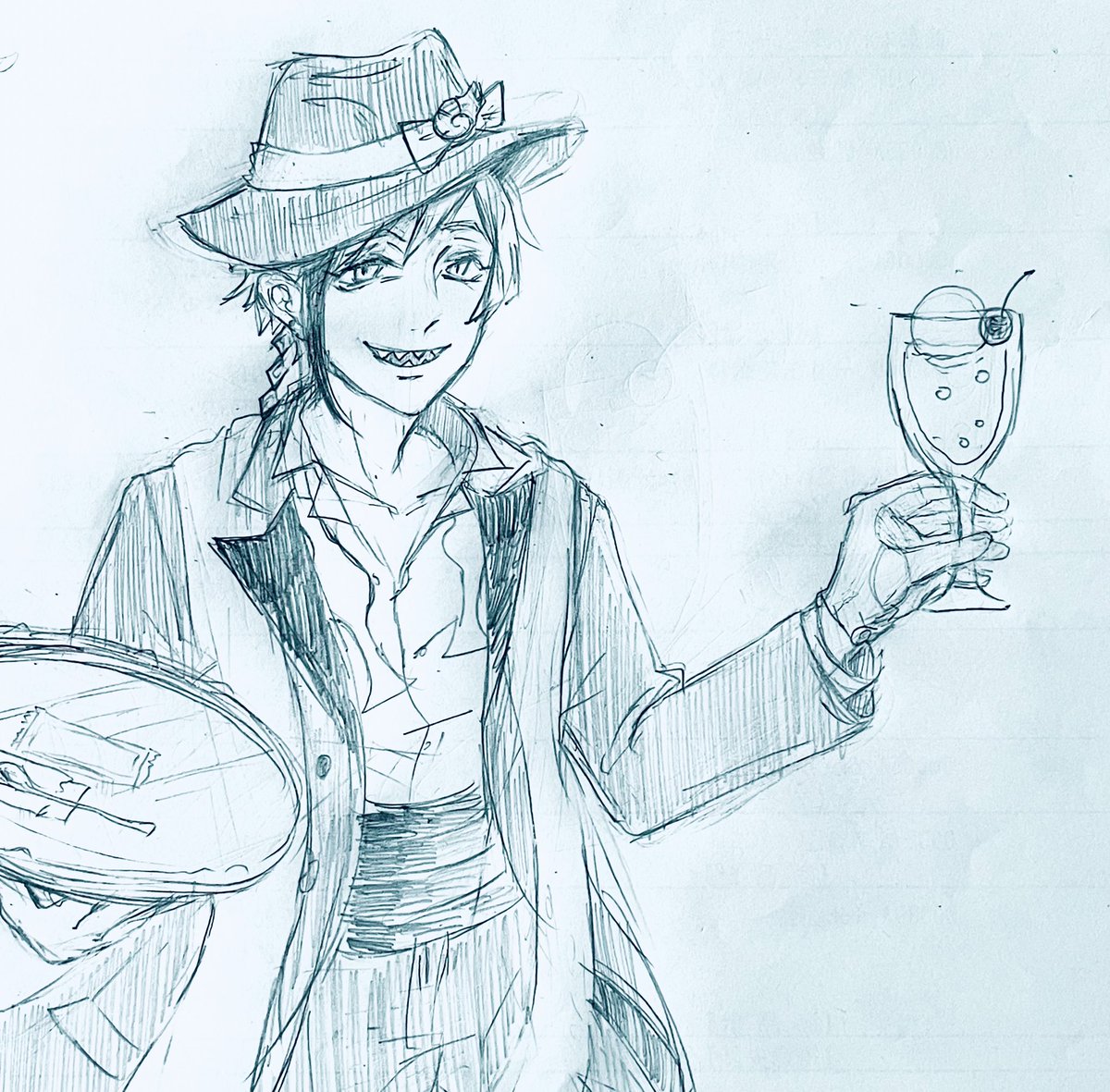 #ツイステ #ツイステファンアート #フロイド・リーチ らくがき 「はーい!お待たせ♪ 小エビちゃんのクリームソーダ♡」